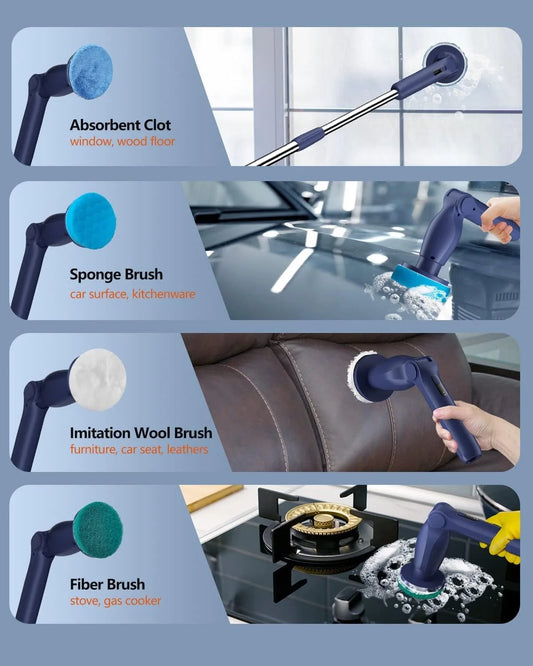Electric Spin Scrubber, Cordless Bath Tub Power Scrubber with Long Handle and 8 Replaceable Brush Heads, Shower Cleaning Brush Household Tools for Bathroom, Floor Tile ,Car