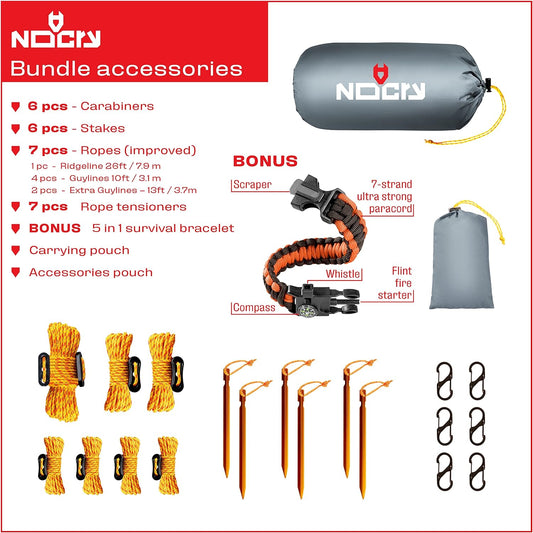 Rain Fly 10X10 Lightweight Survival Camping Tarp; 100% Waterproof; Makes a Great Backpacking Tarp or Hammock Shelter; Comes in Multiple Colors, Survival Bracelet Included; Grey